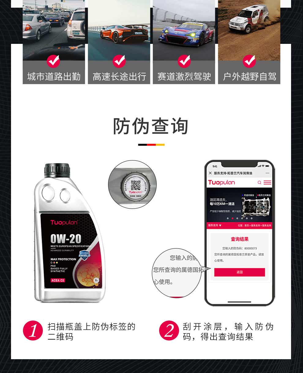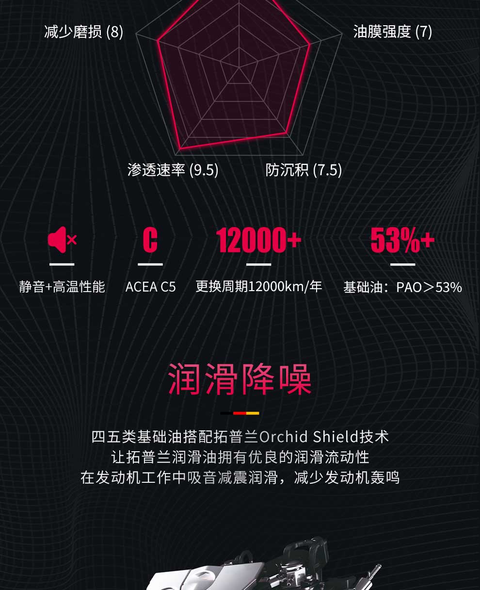 TUOPULAN智越系列满足严苛的技术要求,提供优异的冷启动保护,即使在高温下,也会迅速的在发动机关键的零件上形成一层连贯的油膜,保持对发动机最佳的抗磨损保护。