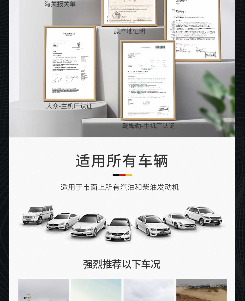有效控制涡轮增压缸内直喷发动机产生低速早燃现象,同时可针对性保护涡轮增压器,抑制机油在涡轮增压器内的结焦或沉积物生成,避免涡轮增压器温度过高以及轴承故障。