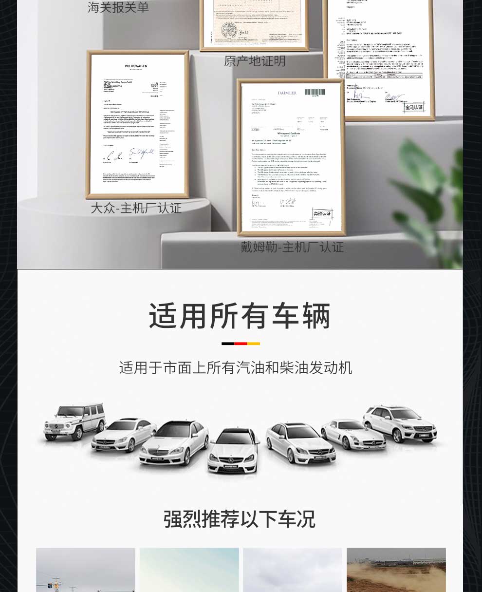 有效控制涡轮增压缸内直喷发动机产生低速早燃现象,同时可针对性保护涡轮增压器,抑制机油在涡轮增压器内的结焦或沉积物生成,避免涡轮增压器温度过高以及轴承故障。